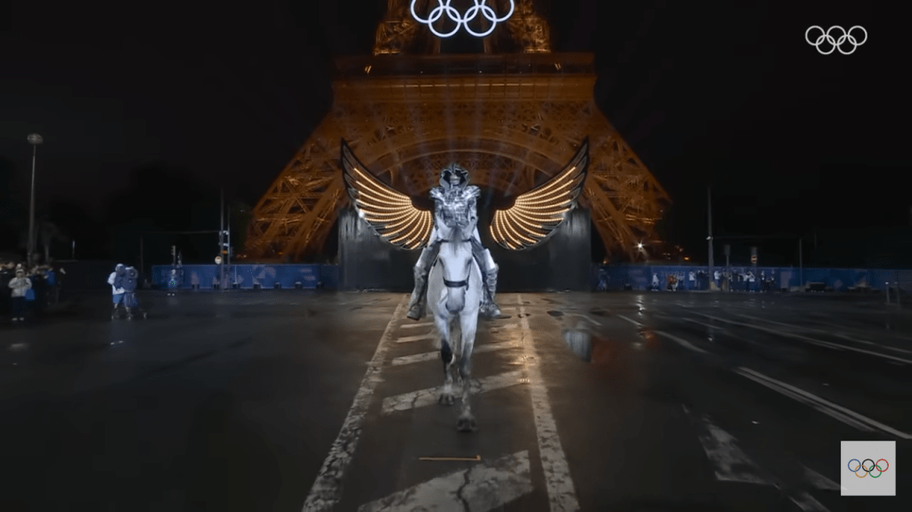 I would argue that the first identity is the oarsman and torchbearer that I discussed in last week’s post, the second identity is the rider, and the third identity is the golden voyager who we don’t see until the closing ceremonies. There are allusions to him in the opening ceremonies, but again, I will have to save most of that content for a post exclusively about him.